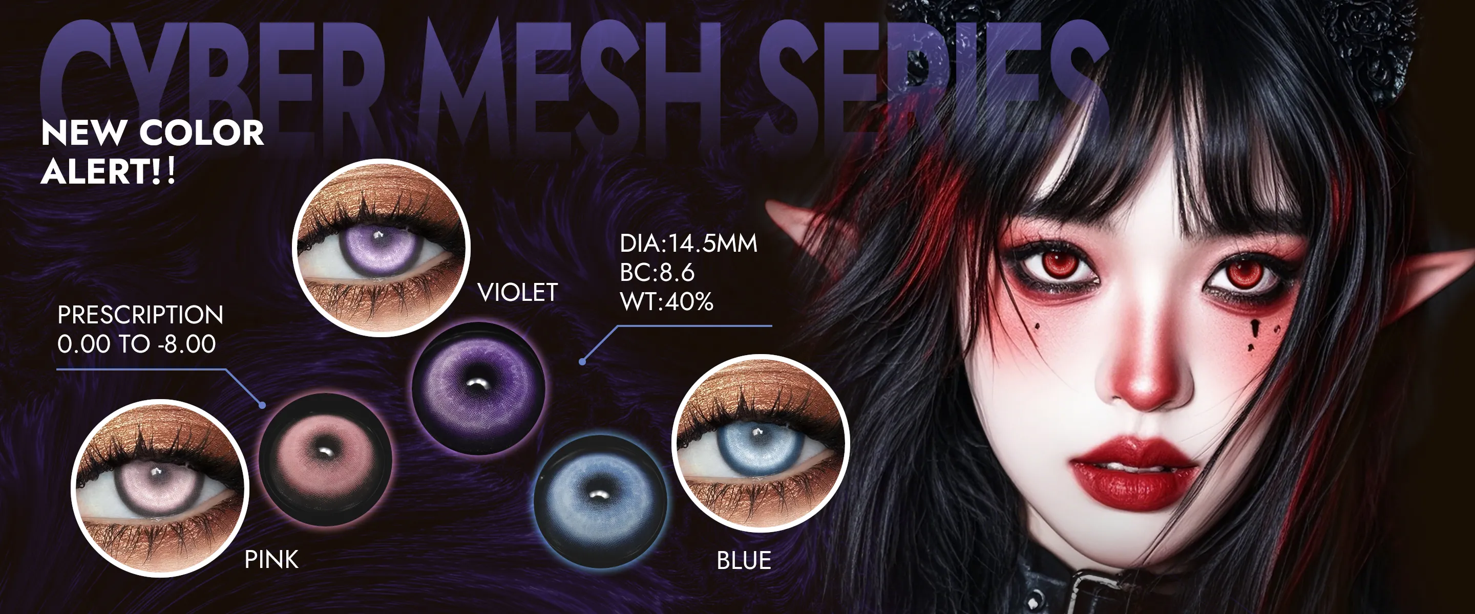Suitable for both light and dark eyes! This pair of blue-pink gradient contact lenses with butterfly iris patterns is breathtaking. The inner layer tr...